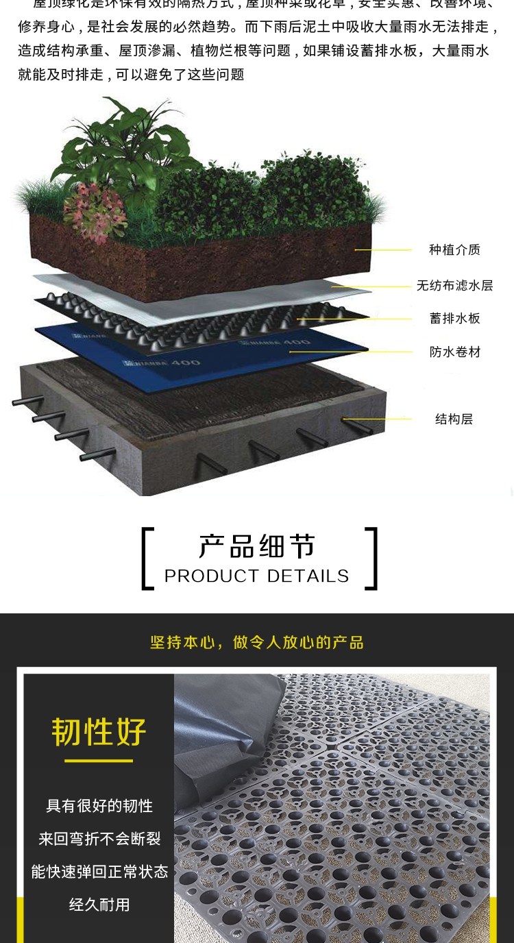 武隆县20高密度聚乙烯阻根层耐根穿刺排水板疏水板